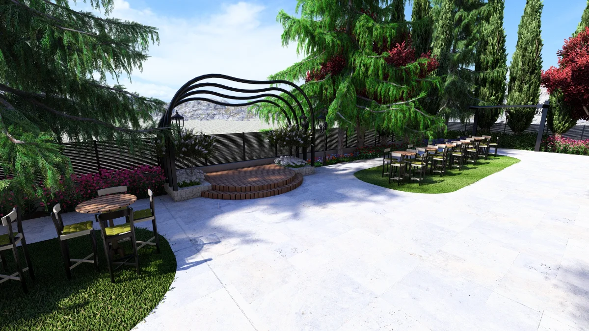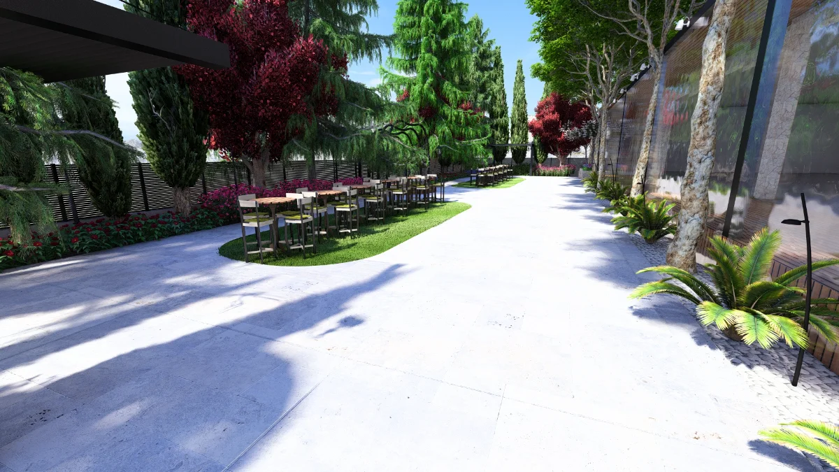 הנוף משולב בצמחייה מקומית מדויקת, חומרים טבעיים ואיכותיים, וחוויית חוץ היוצרת חיבור טבעי לאזור.